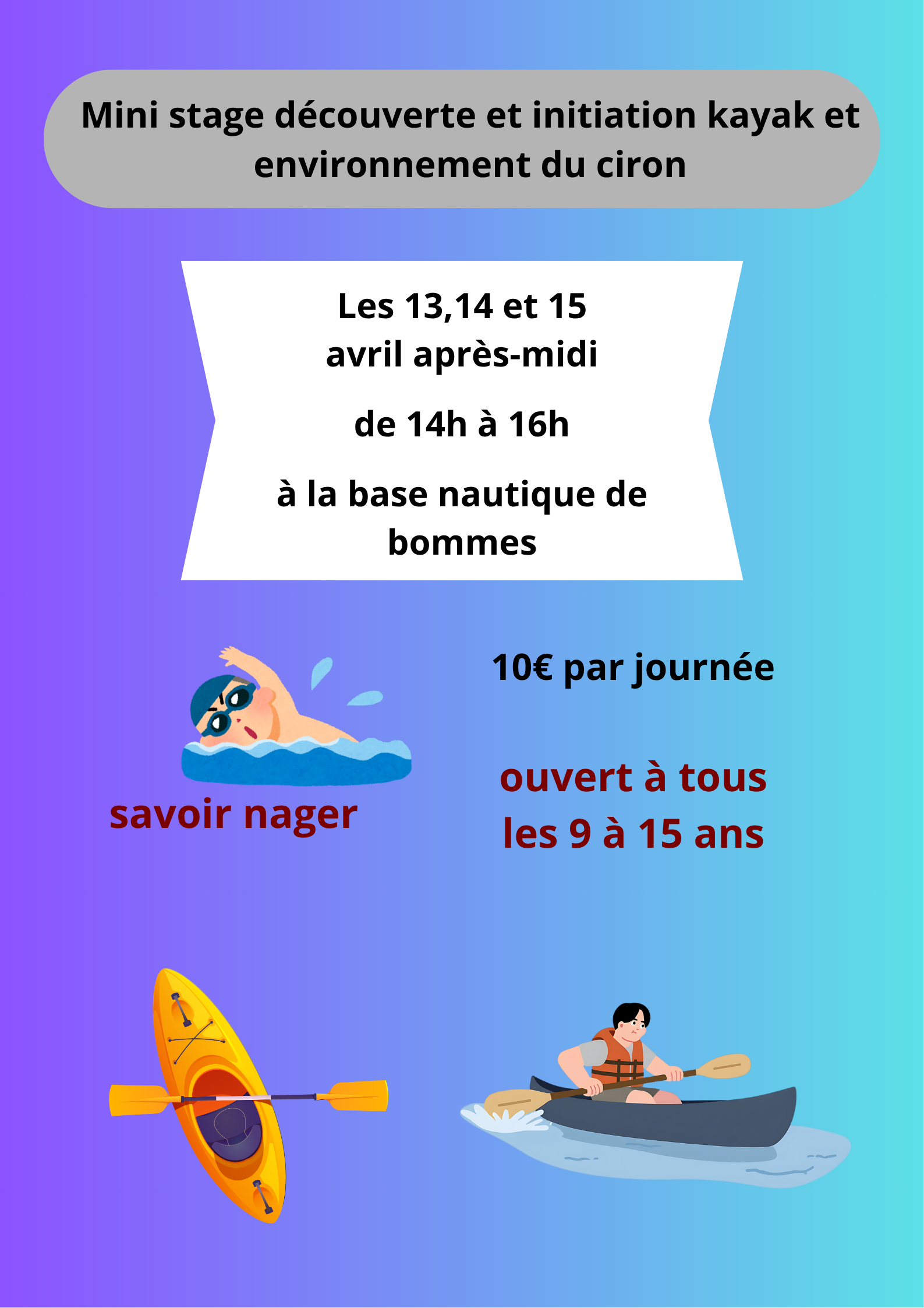 Reprise de l'école de Pagaie pour tous le Mercredi 22 Avril 2026 à 13h45 début 14h.
